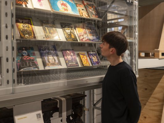 The central Weston Collections Hall features over 100 mini curated displays literally “hacked” into the ends and sides of storage racking. These flexible displays, organized around three themes—Collecting Stories, Sourcebook for Design, and The Working Museum—change regularly and tell diverse, topical stories about the V&A’s collections.