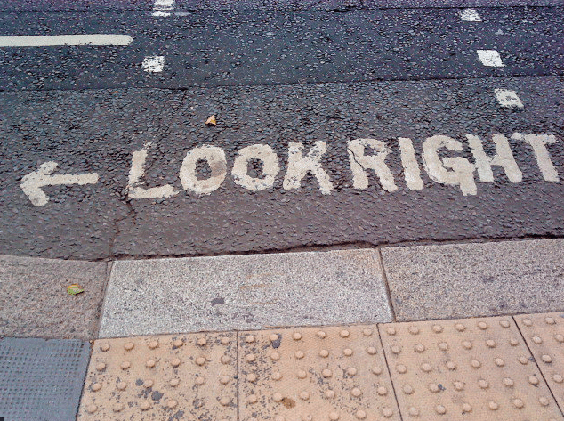 - The cars are on the other side of the street! One of the scariest things about being a foreign pedestrian is that the cars come from your right. Fortunately, the crossings are painted with a “LOOK LEFT/RIGHT” sign complete with an arrow. However, I’ve found a few that are wrong.